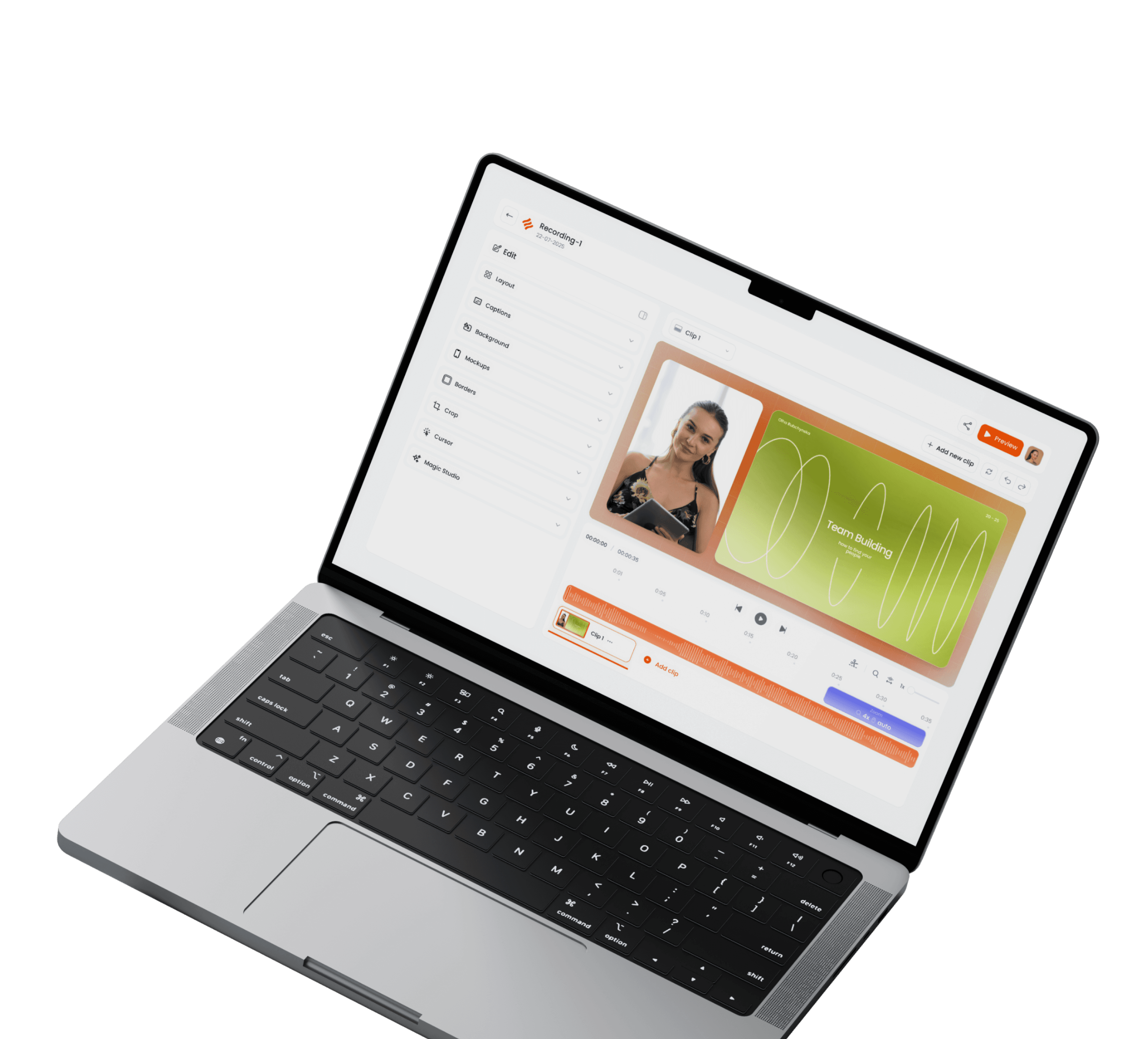 Clipwise пришвидшує запис і обробку відео в 3 рази. Ви знімаєте, редагуєте та експортуєте все в одному місці без зайвих програм і монтажерів.